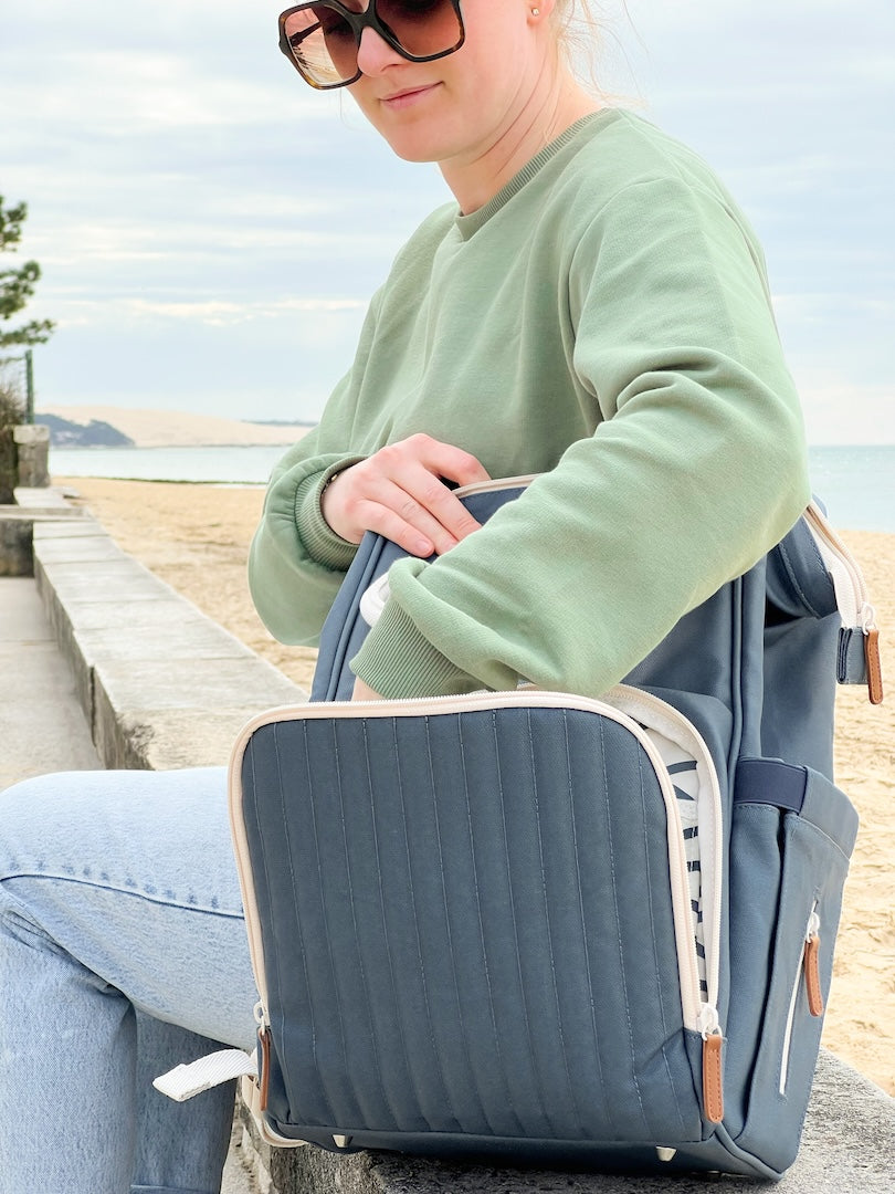 Er ist darauf ausgelegt, mit den Bedürfnissen Ihrer Familie mitzuwachsen. Er bleibt Ihr treuer Begleiter – weit über Windeln und Fläschchen hinaus, wird er mal zum praktischen Reisebegleiter, Picknick- oder Strandtasche oder sogar zur Bürotasche… immer bereit für Ihre Abenteuer.
