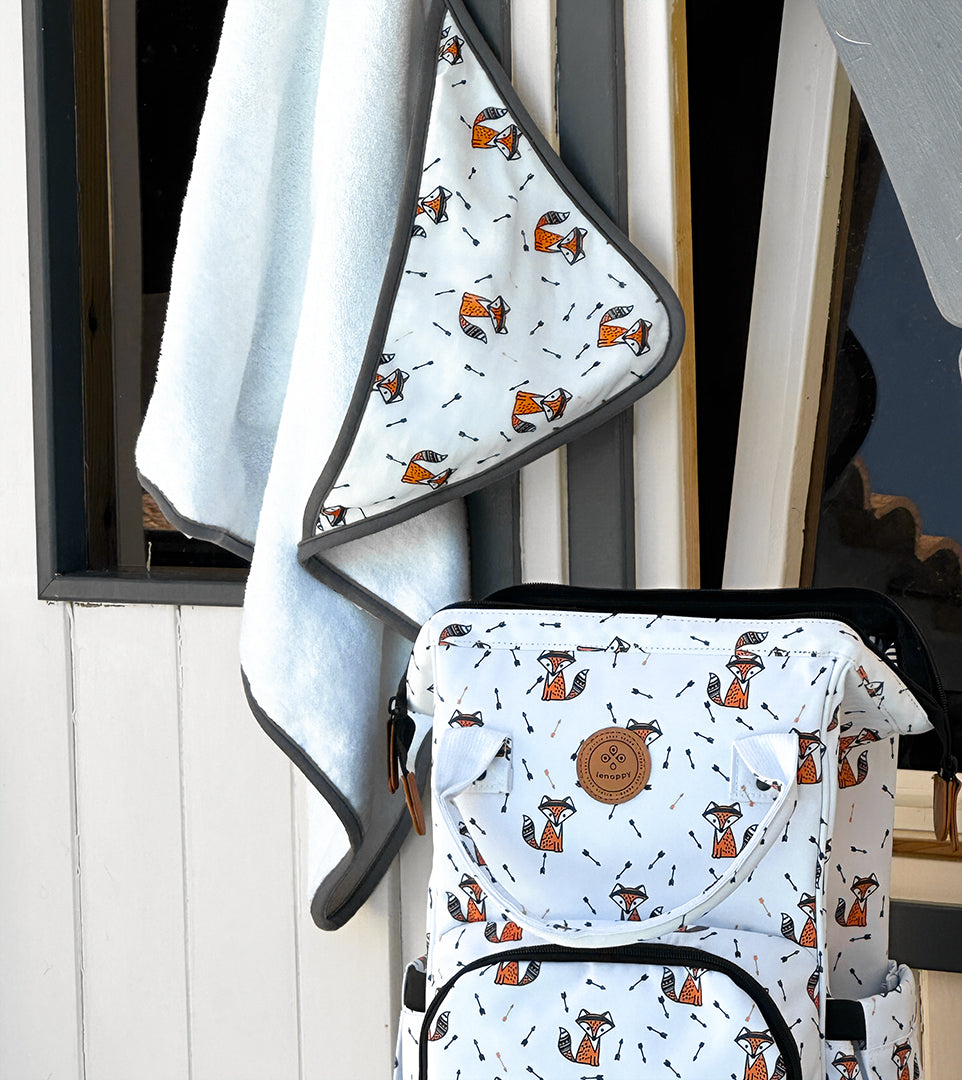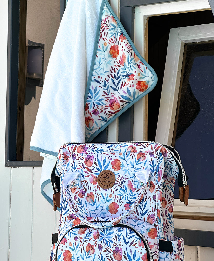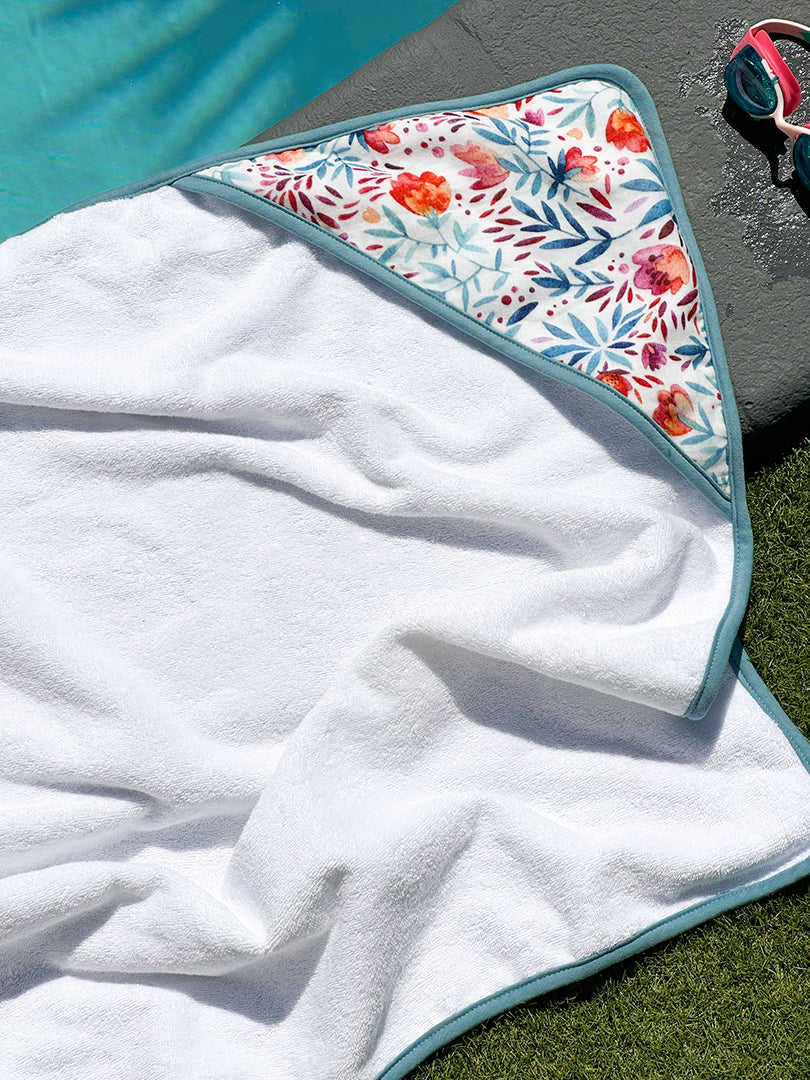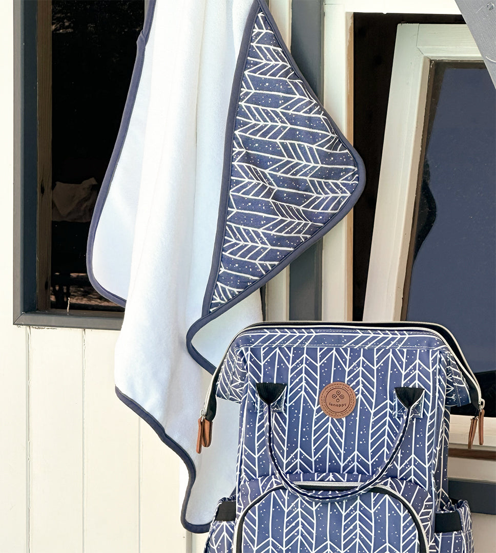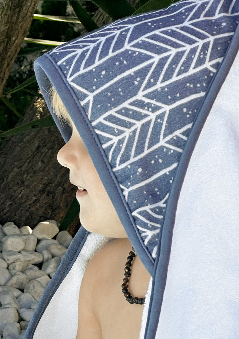 Nous avons imaginé cette cape de bain pour se marier parfaitement avec certains modèles de sacs à langer de notre collection.